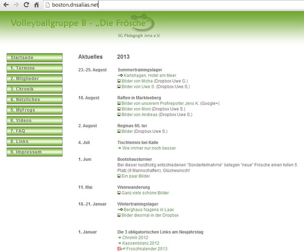 - 2005 habe ich dann mit einem IBM-Webserver experimentiert und die Homepage auf einer sog. DynDNS-Adresse (boston.dnsalias.net) in meinem Keller betrieben. Das Design? Fragt nicht