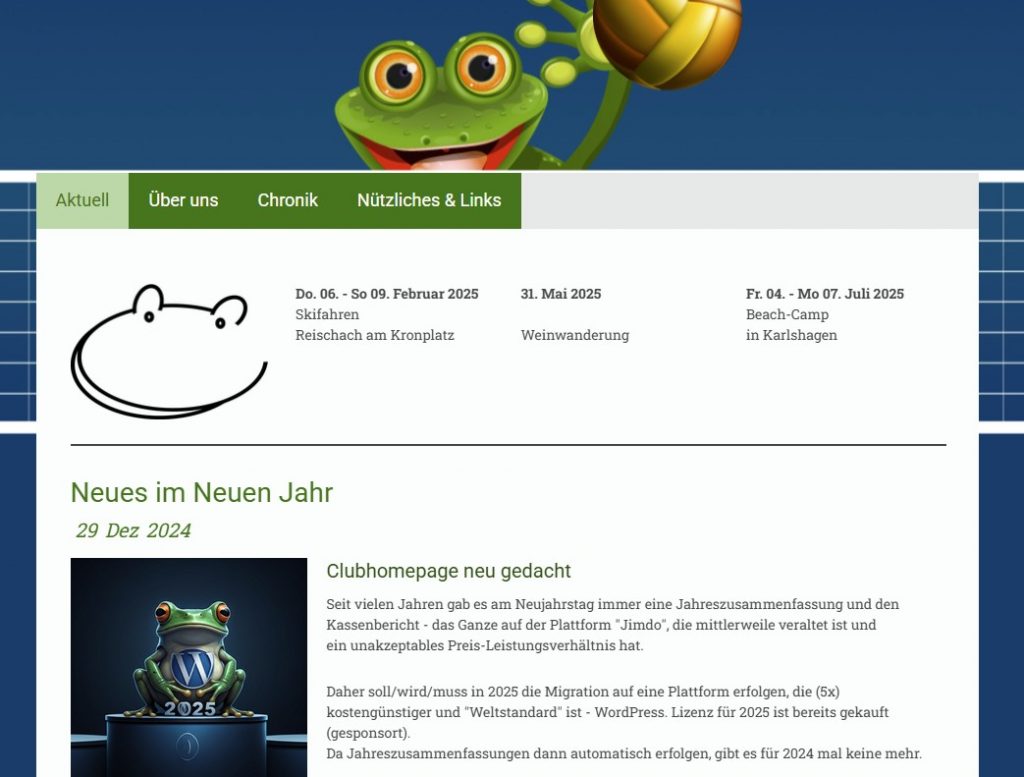 Design zum ersten Mal von einer Agentur. Sieht man, oder? - Ab 2012 hatte ich spannende Erfahrungen im dem Webbaukasten Jimdo gemacht und mich entschlossen, diesen fortan für die Froschhomepage zu nutzen, was lange gut ging, aber immer teurer (und schlechter) wurde