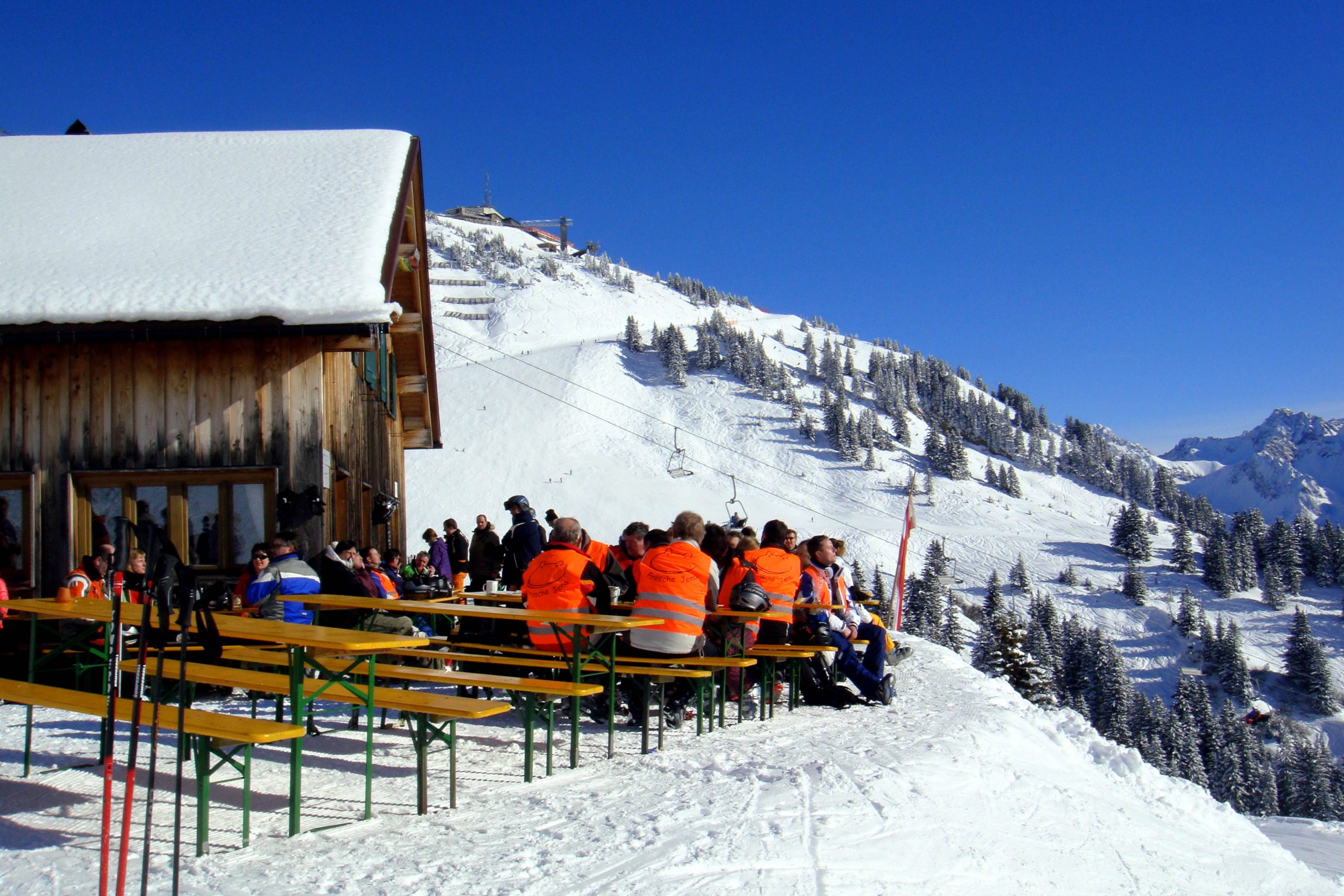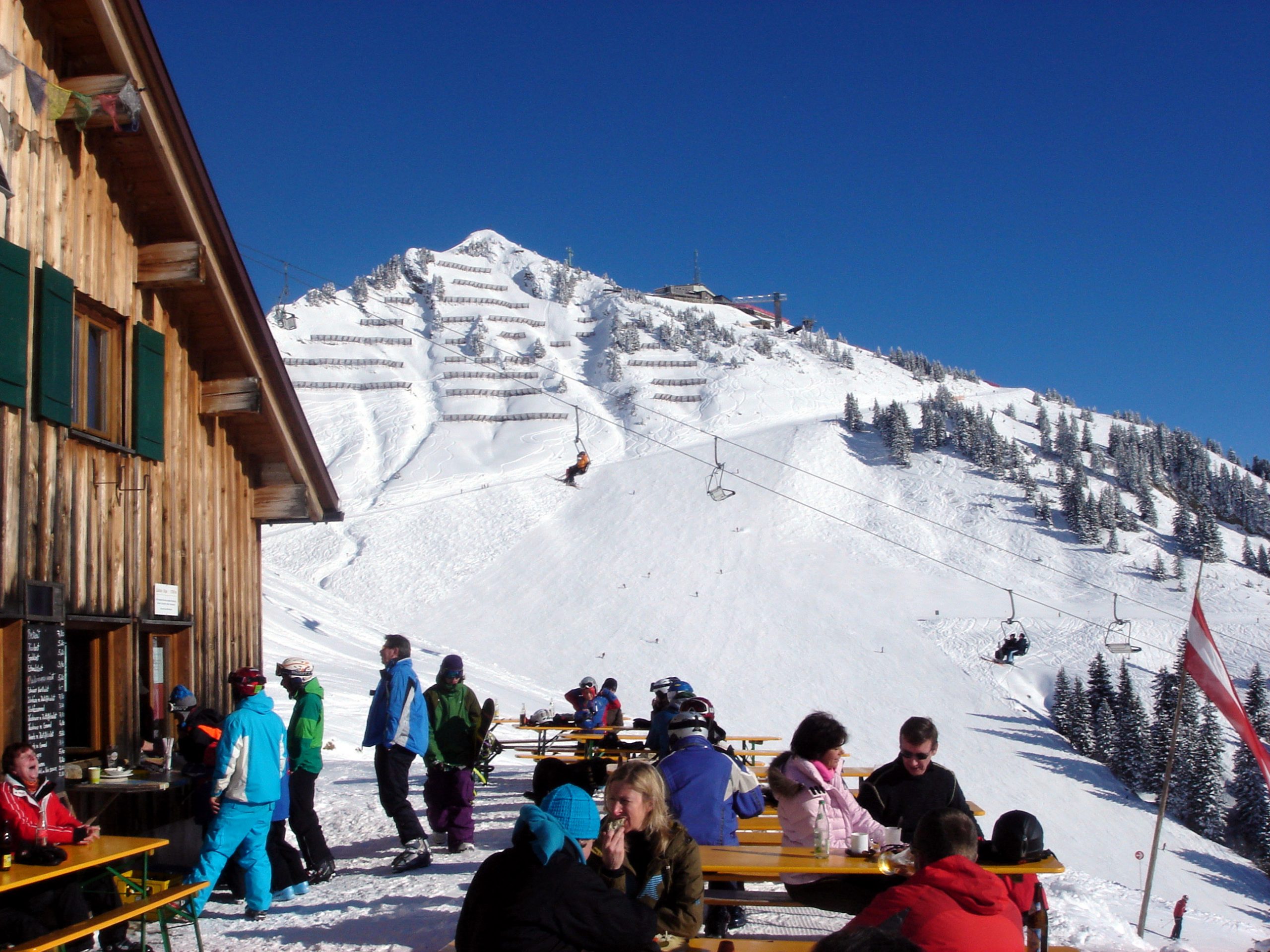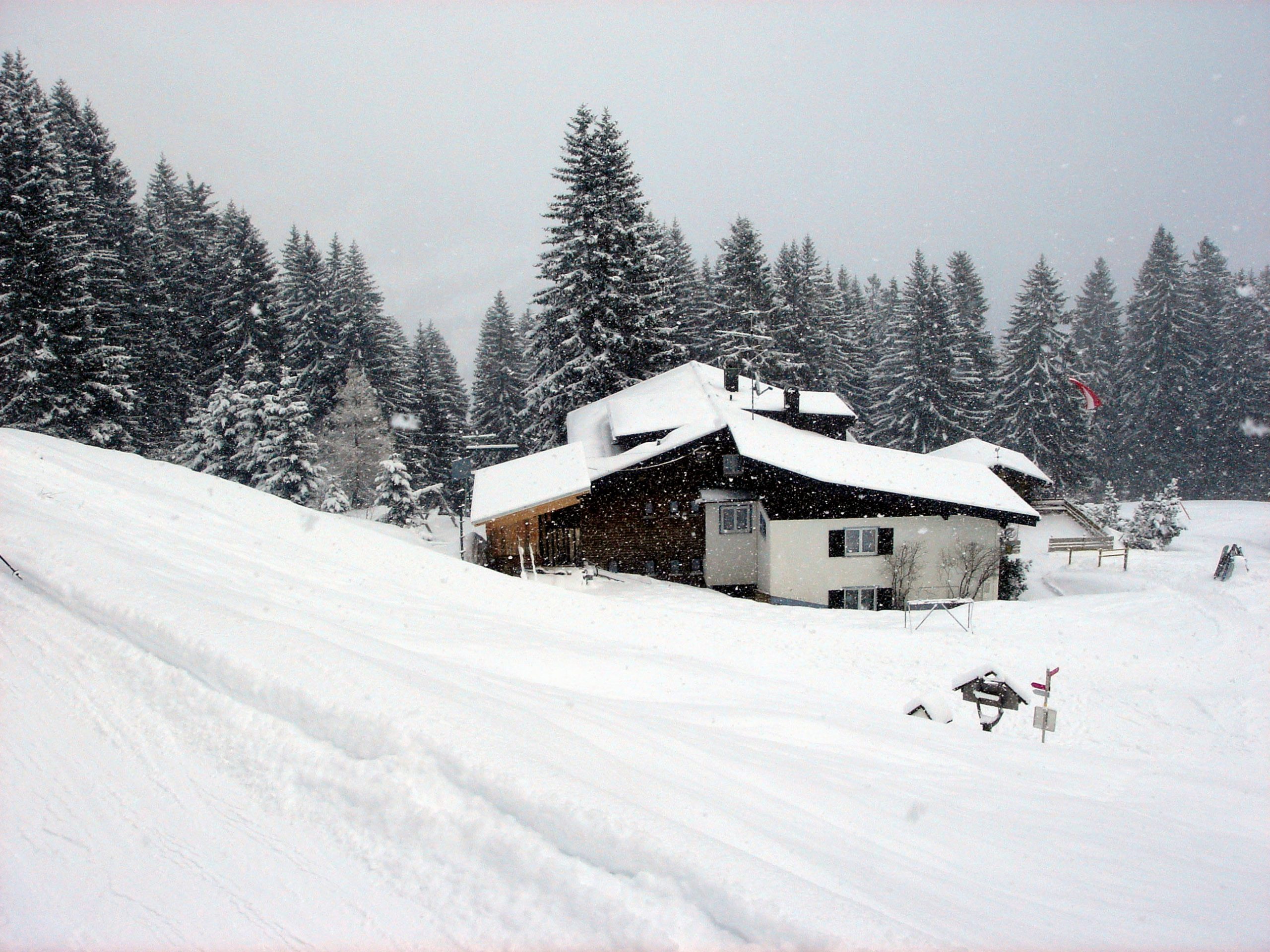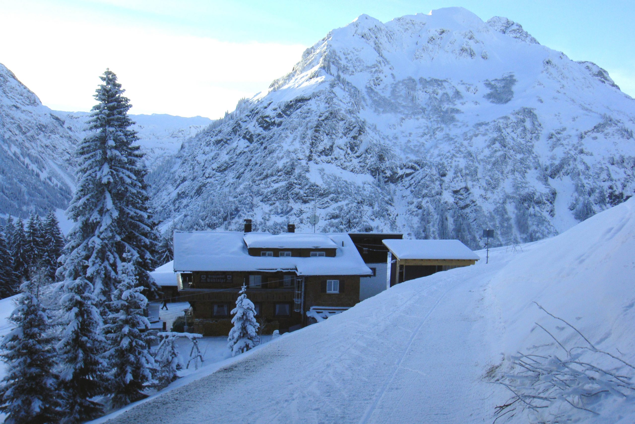 Urige Hütte und wir nach den Skitagen allein inmitten der Natur unterhalb des Walmendinger Horns waren