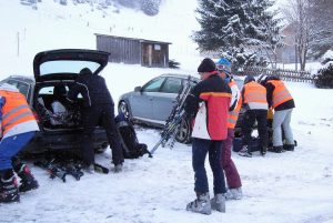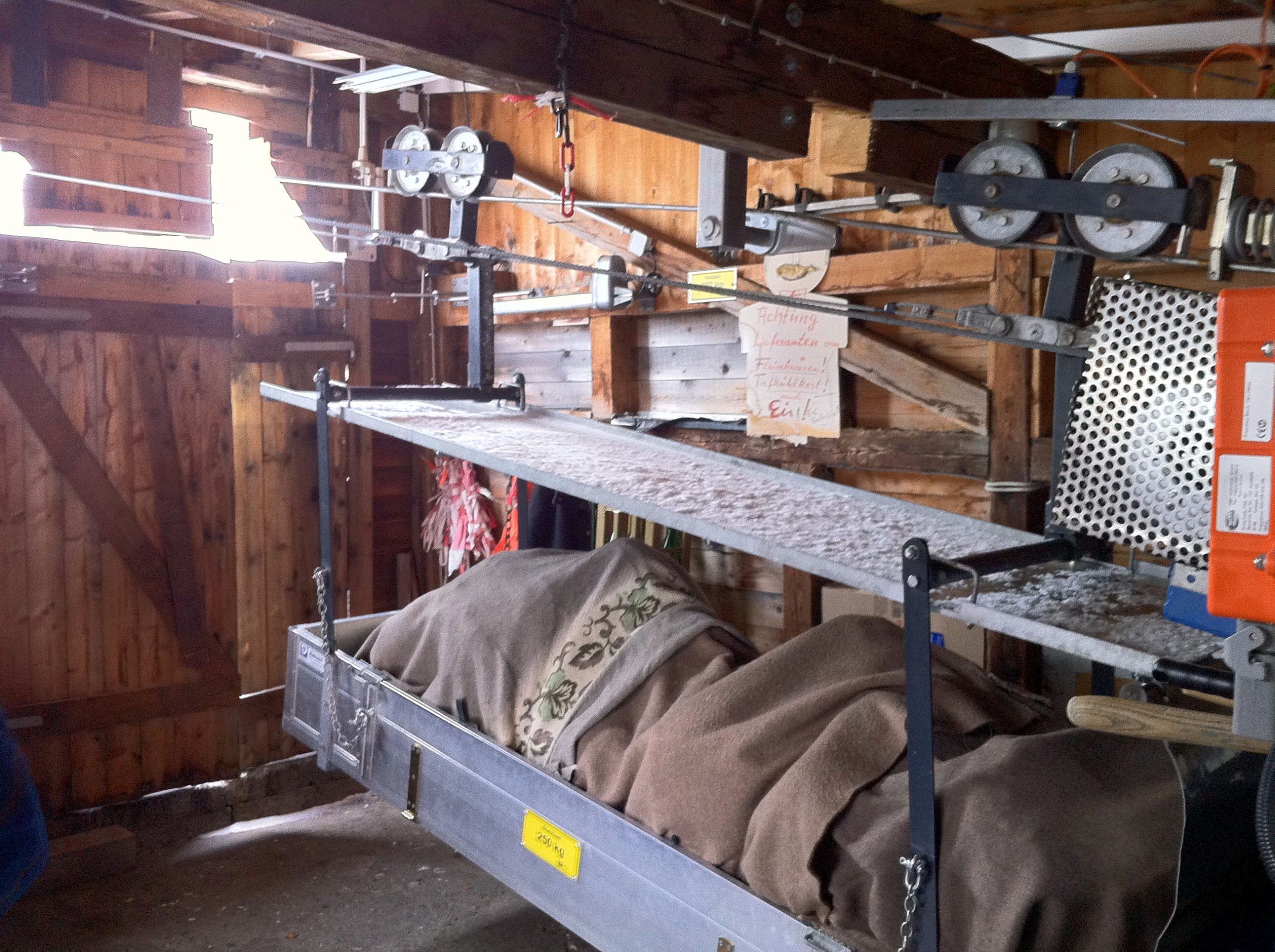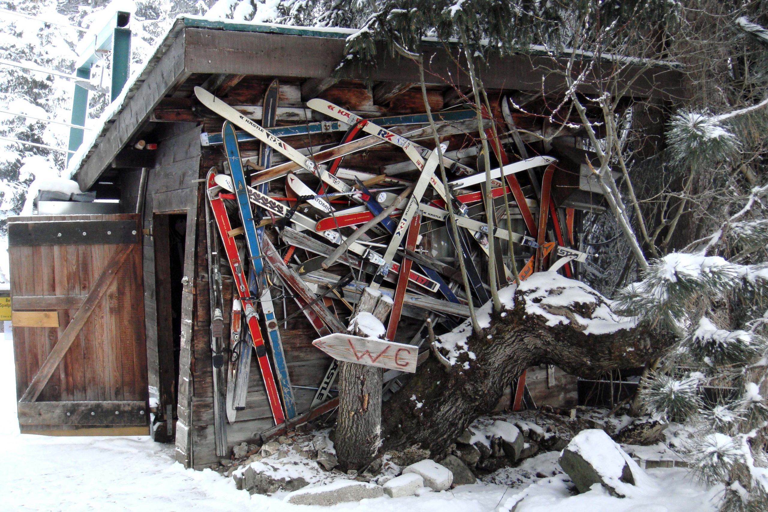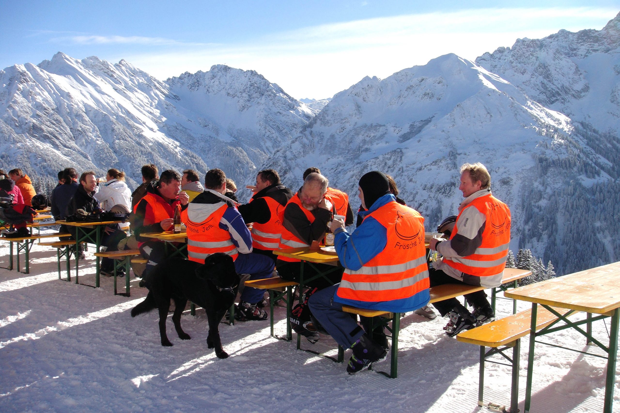 Urige Hütte und wir nach den Skitagen allein inmitten der Natur unterhalb des Walmendinger Horns waren